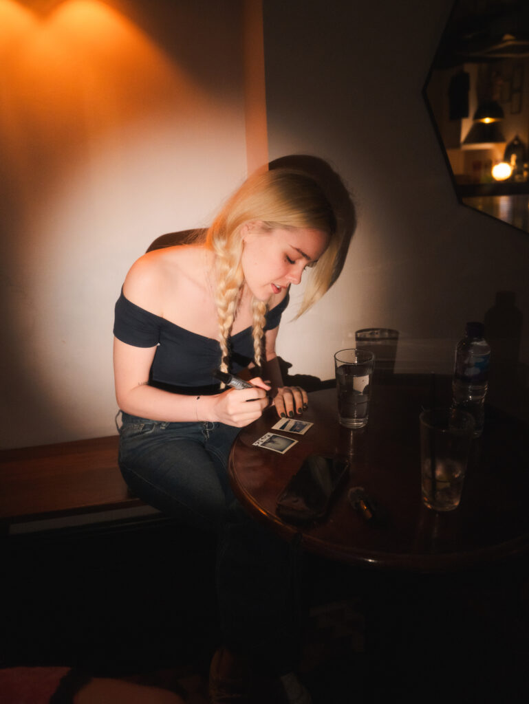 Before she even stepped on stage, she had already left pieces of herself behind—handwritten lyrics and signed polaroids tucked into corners of the venue, waiting to be found. It set the tone for the night: intimate, intentional, a little bit romantic.