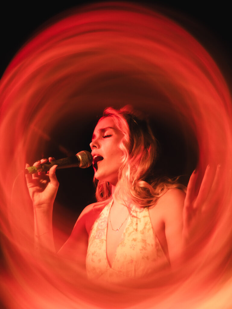 When she introduced “Deja Vu Hotel, performed live for the first time, there was a flicker of something special in the room—an unspoken awareness that this was a moment. By midnight, it would belong to everyone. For now, it was just ours. Her voice—already rich and textured on record—felt even more alive in person. Warmer. Fuller. The kind of voice that doesn’t just fill a room, but wraps itself around it. There were echoes of Lana Del Rey in the dreamy melancholy, and glimpses of Whitney Houston in the control and depth—but nothing about it felt borrowed. It was entirely her own.