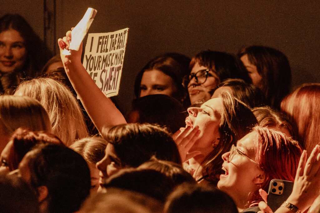 The crowd, dressed in stylish outfits and glowing with excitement, greeted him with loud screams. From the first notes of ‘Sweat‘, through older songs and even an unreleased track, the audience sang along to every word. A standout moment was a raw, electrifying cover of Harry Styles’ ‘Kiwi‘, which sent the room into chaos.