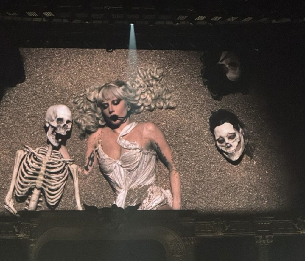 Gaga, known for her versatility in the industry, kept fans eagerly waiting for her grand entrance with a video of her writing with a giant red feather quill. As soon as the lights turned off and deafening screams echoed through the arena, the pop sensation took to the stage (or rather was wheeled out atop a huge draped structure) and we went straight into Act 1: Of Velvet & Vice. Smash hits such as Abracadabra and Garden of Eden appeared early on in the setlist, as well as Gaga throwing it back to hits such as Judas and Poker Face – my personal favourites.
