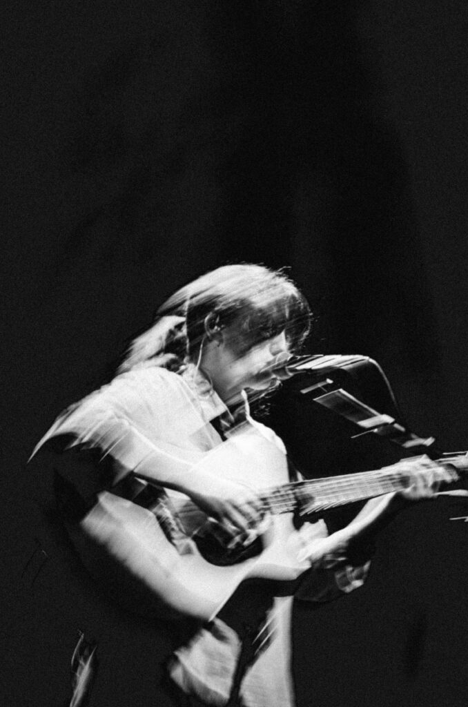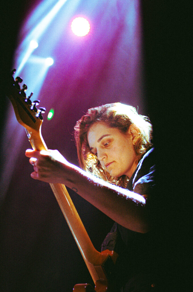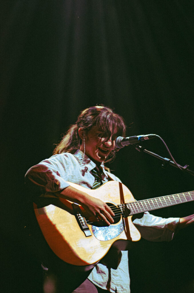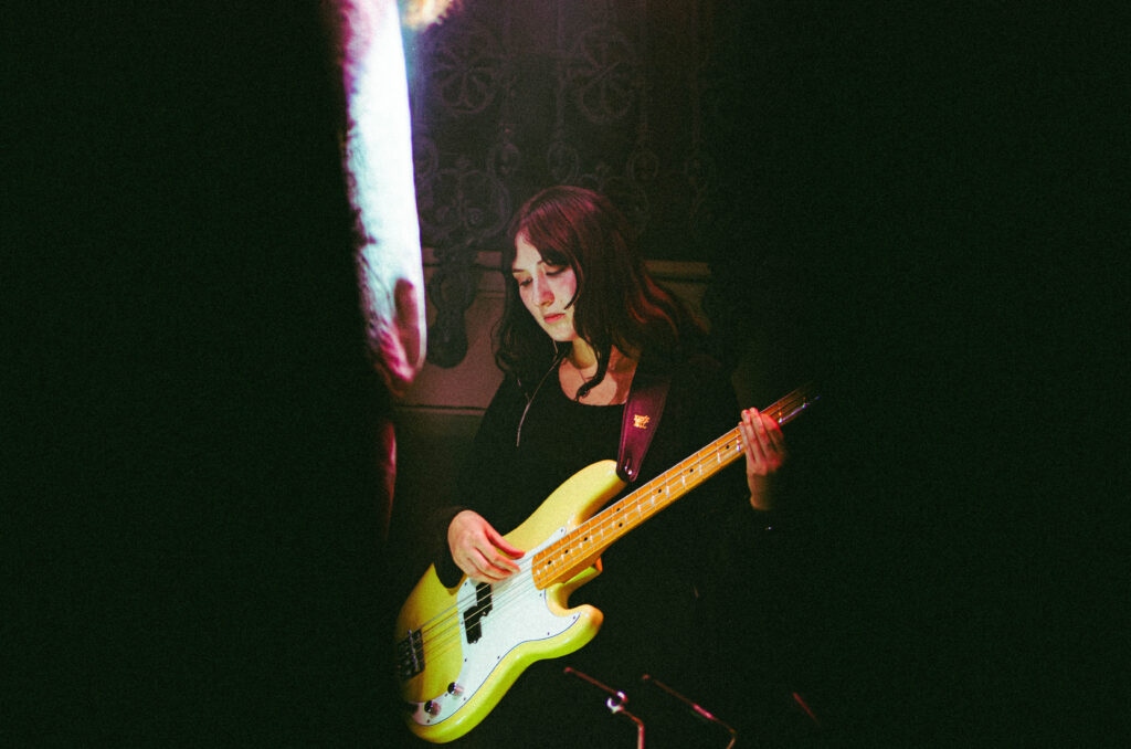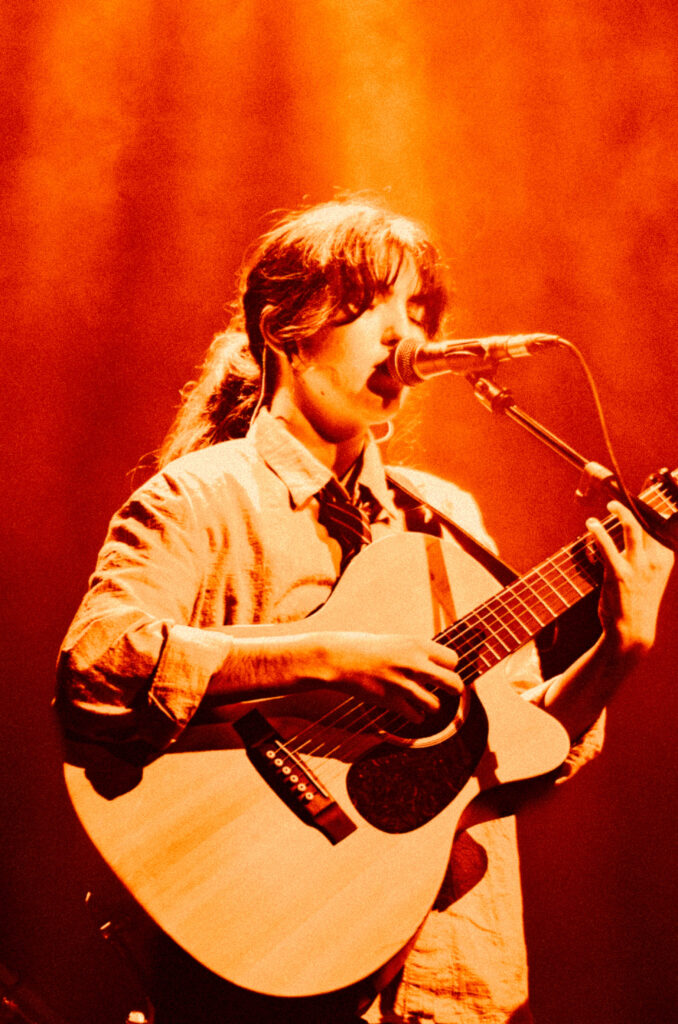 Between Falzon’s set and Duckart’s headline show, it is clear the audience is anxiously waiting for his arrival. Every movement on stage (from a flicker of a curtain to someone in the team laying down a set list) is met with hurried gasps and sequestered screams. Alec arrives on stage 4 minutes past 9, and the anticipation in the crowd is felt throughout the room as shrieks come from the first few rows. Duckart opens the set in endearing awkwardness, a shyness that’s almost par for the course for indie folk artists, hints of smiles glinting through the fringe that silhouettes his face. His band (Soph – guitar, Remi – drums, and Marlow – bass) accompanies him on a setlist that no one has played before, and opens the set with ‘Martingale’, the opening track for his 2024 EP ‘Flush’. ‘I am starting to resent myself’ immediately reminds me why I like Duckart’s music. From his soft vocals, open tunings, and resonant harmonies, you don’t get any more vulnerable than this. Duckart writes like a page from a diary entry, the softness of his voice juxtaposed by the morbid sadness within his lamenting. His lyrics pierce you; punch you in the gut; make you want to scream into a pillow after arguing with your parents/best friend/partner.